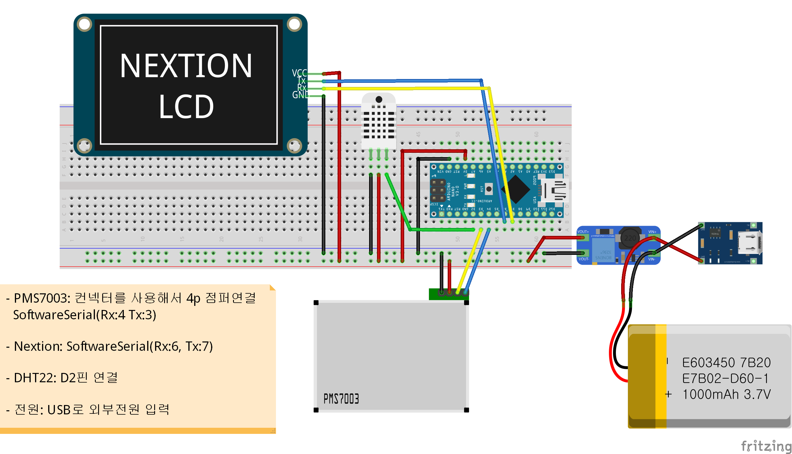 PMS센서와 Nextion은 모두 소프트웨어시리얼로 연결합니다.