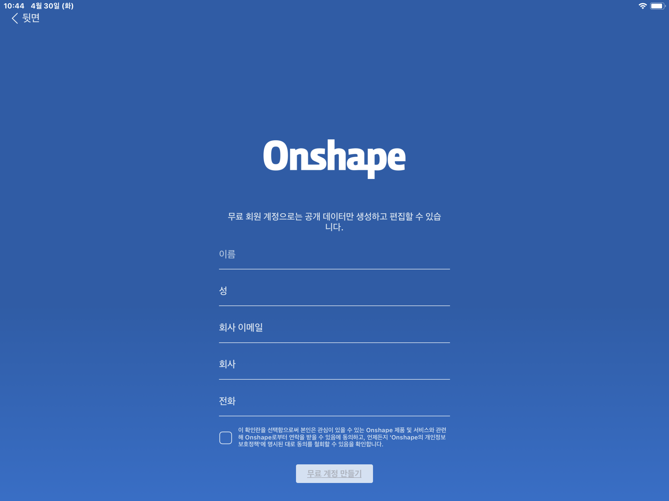 Onshape 무료 계정 만들기