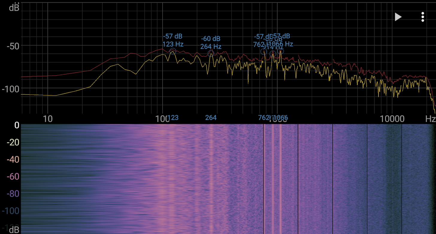 -57 ~ -60 db 수준이었던 값이 -60db대 초중반 으로 수치상으로 개선이 있는것 처럼 보입니다. 특히 300 ~ 1100Hz구간에서는 개선의 폭이 확연해 보이고 있습니다.