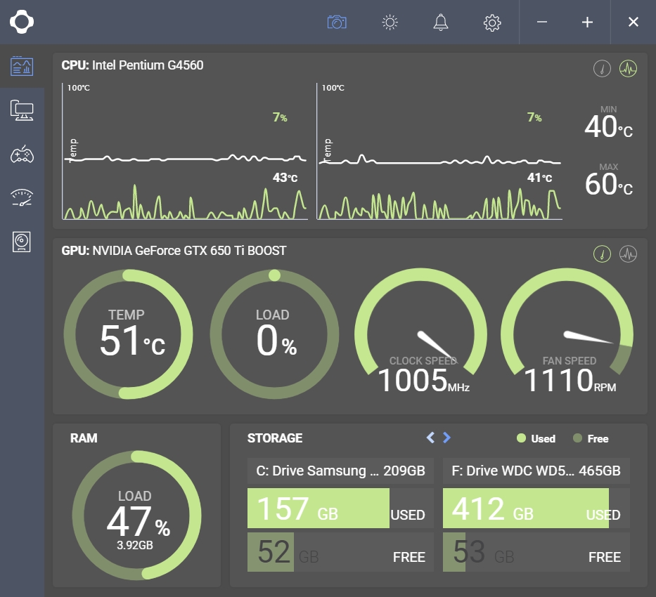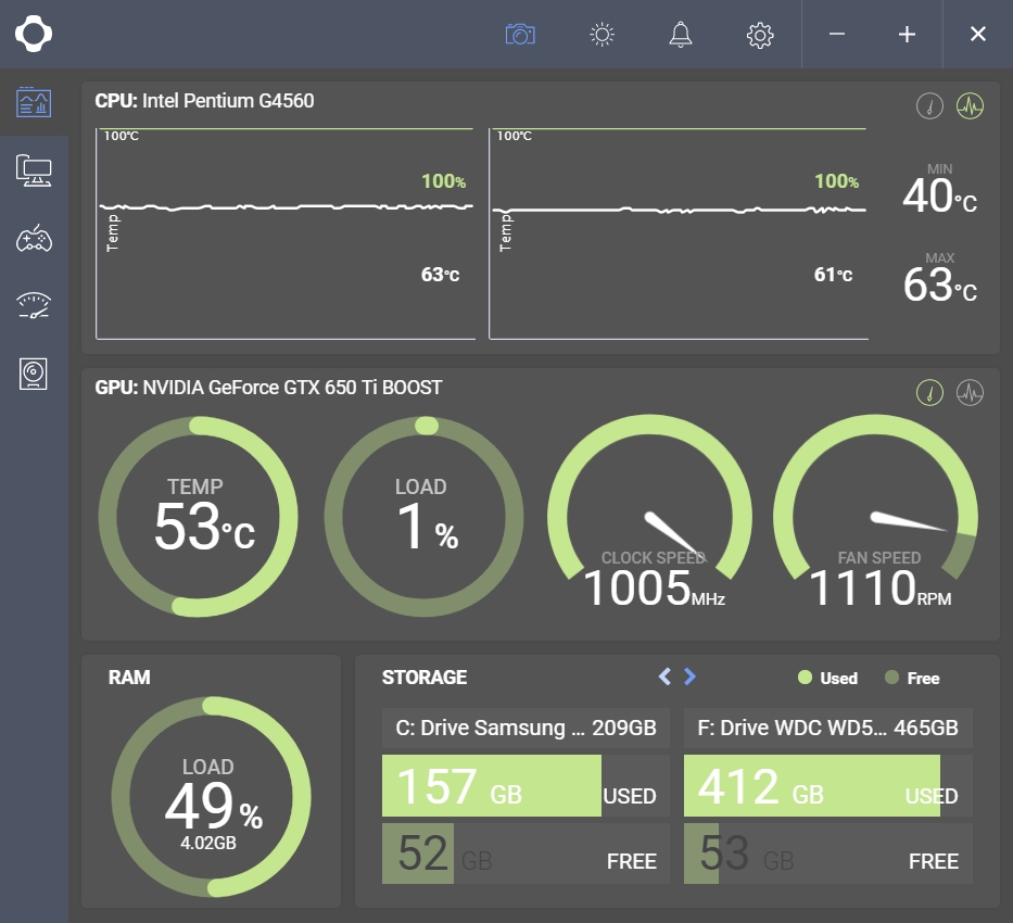 온도와 소음을 비교하기위해서 컴퓨터를 사용하지않는 휴지조건과 열일하는 부하조건으로 두가지 상황에서 관찰을 해 봤습니다.