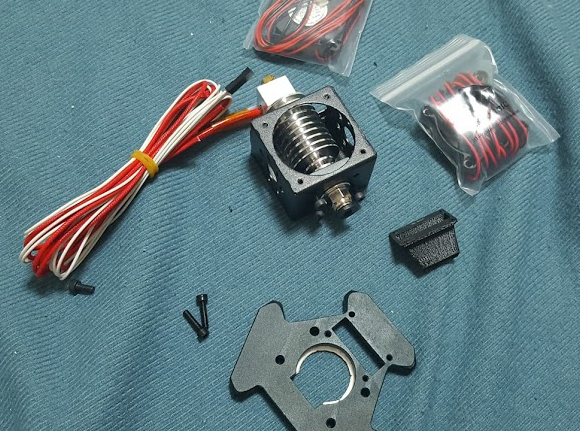 노즐팁, 히팅블럭, 히팅파이프, 히팅소자 및 센서는 결합이 된 상태로 였고 나머지는 조립을 해야 했습니다. 그런데 3D프린터 출력물인 쿨링덕트는 여유공간이 별로 없어서 조립이 까다로웠습니다.