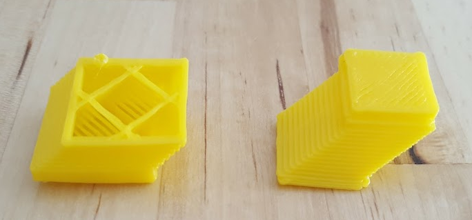 탈조라고 하죠. X,Y,Z 3개의 타워를 하나씩 담당하는 스탭모터중 한놈이 토크가 딸리는건지 출력물에 살짝만 걸려도 탈조가 일어났습니다. 그래서 사진에서처럼 정육면체인데 한쪽으로 슬금슬금 기어가는 모습.