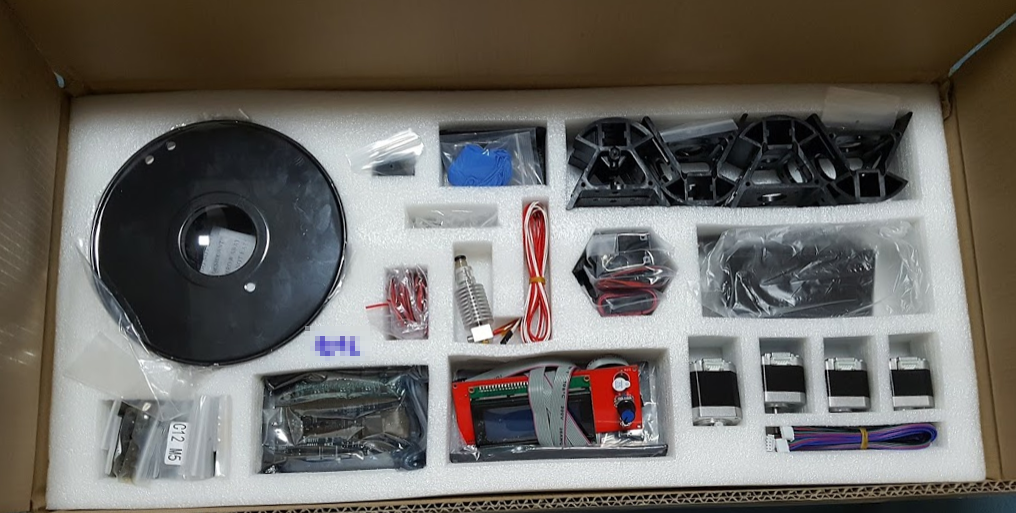 그외 프레임용 알루미늄 레일봉, 벨트, 조립용 마운트, 베드등 당연한 부품들이 있고, 뼈대를 조립하면 다음과 같은 행태가 됩니다.