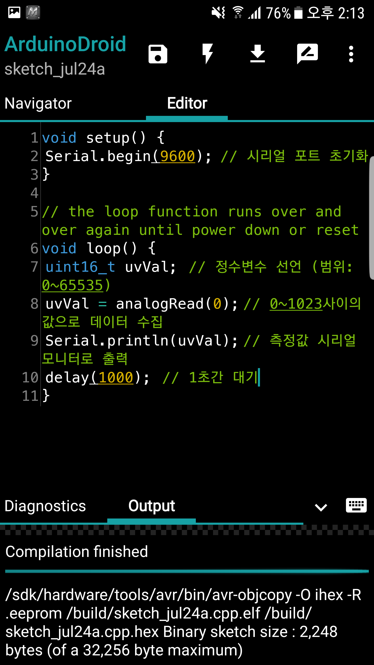 안드로이드 스마트폰에서 아두이노 코딩도하고 코드 업로드도 하고 심지어 시리얼 모니터링까지 할 수 있는 IDE 어플입니다.