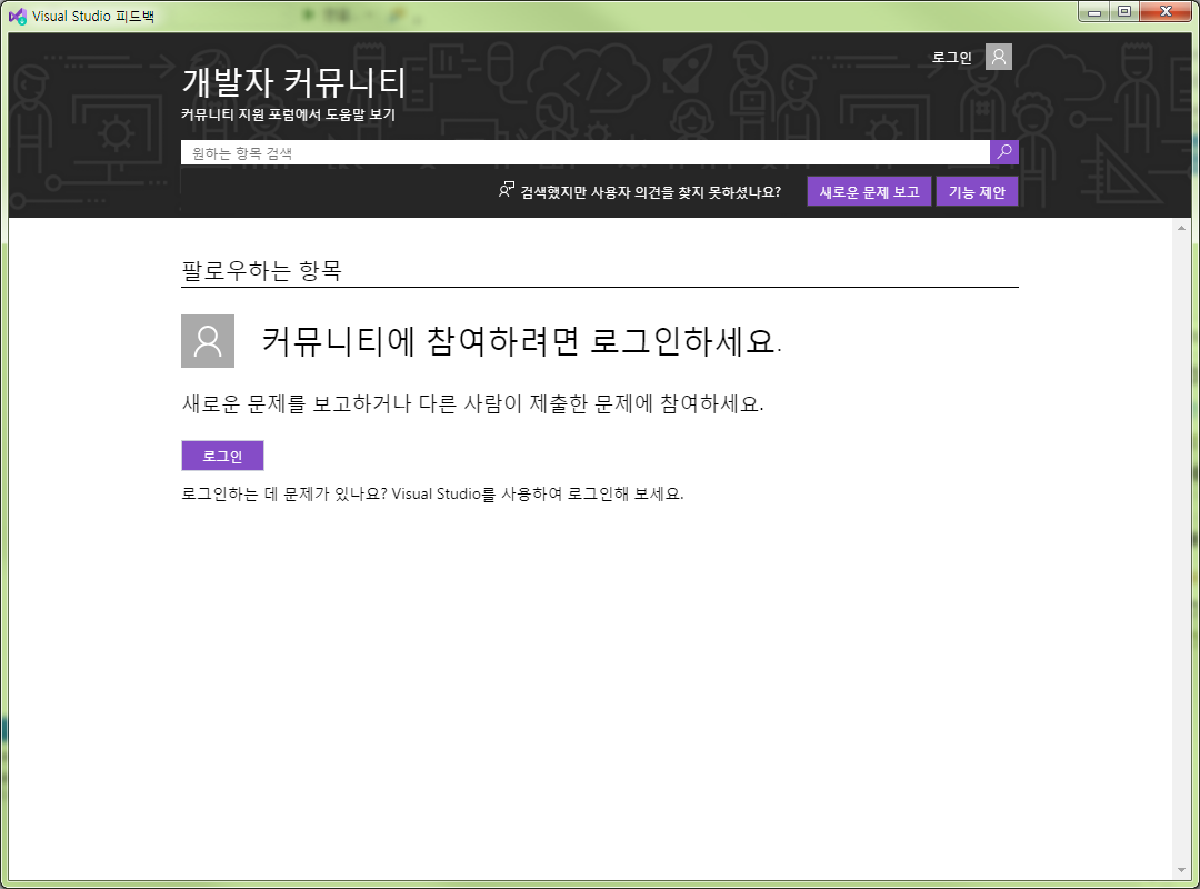 VS에서 “도움말 >> 피드백 보내기 >> 문제 보고