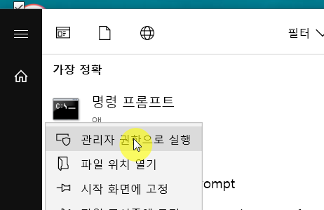 그리고 윈도우 커맨트창(cmd)을 관리자권한으로 열어줍니다.