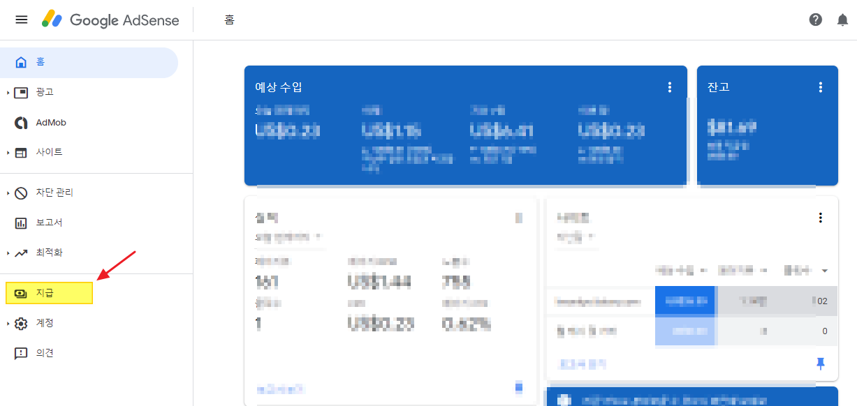 애드센스 페이지에 가보시면 지급이라는 메뉴가 있습니다. 저 메뉴는 언제한번 이용해 보나 했는데 드디어 그날이 왔네요. (수익과 관련된 상세정보의 공개는 애드센스의 정책에 위배된다고 해서 모자이크 처리해요. 곧 첫수익을 받을예정이니 수익금 수령후기 따로 준비하고있습니다.)