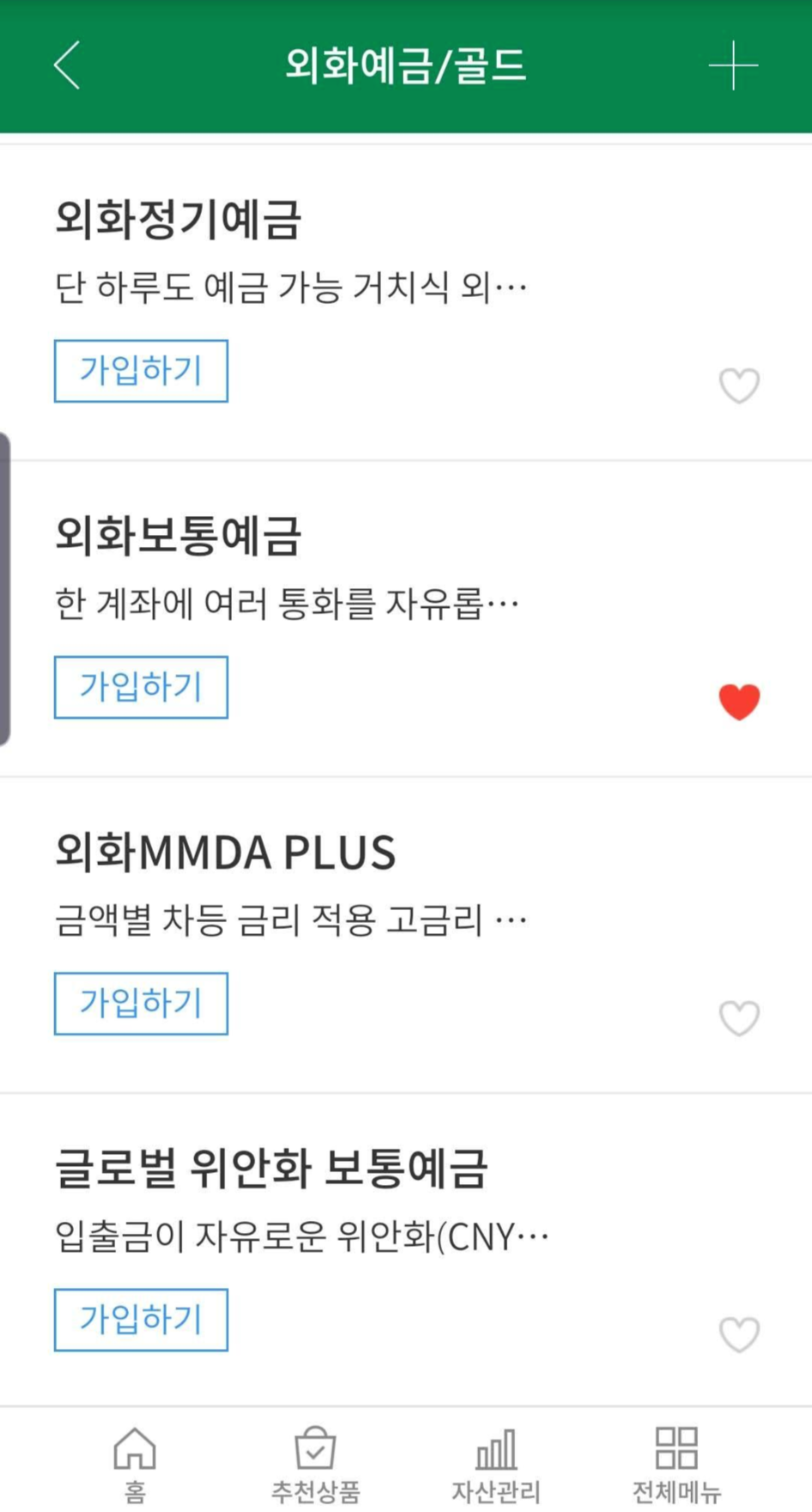 그러면 여러가지 상품들이 나오는데요. 저는 외화보통예금을 선택했습니다. 이게 달러화 뿐만아니라 우리은행에서 취급하는 모든 외화를 다 예금할 수 있는 그런 상품이라네요.
