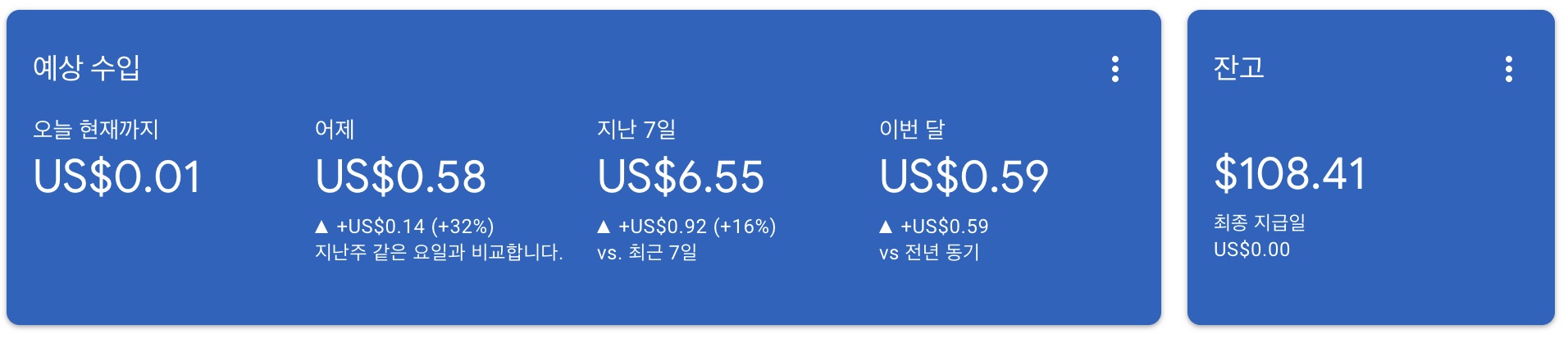 2018년 11월 11일, 구글 애드센스 승인이 된 날입니다. 그 후, 약 1년이 지났습니다. 2019년 10월 31일, 광고수익 예상집계액이 100달러를 돌파하였습니다. 이 글에 관심을 가지시는 분들은 100달러의 의미를 아실 텐데요. 드디어 구글로부터 현금을 받을 수 있게 되었다는 뜻이죠.