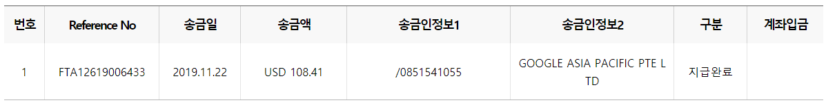 오~ 드디어 잔고가 108.41달러로 반영이 되어 있습니다. 이렇게 지급 최소금액에 도달하게 되면 21일 월급날만 기다리면 됩니다.