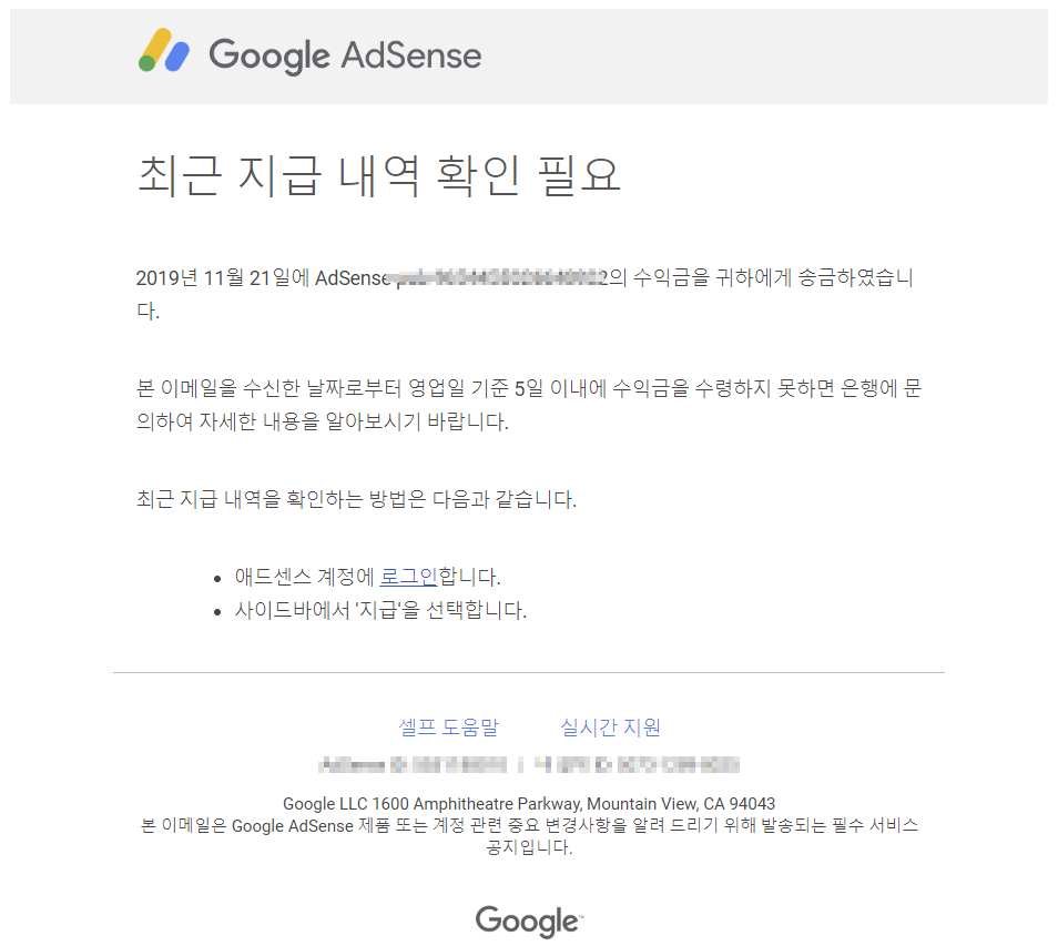 대망의 21일이 되었습니다. 기다리고 기다리던 날임을 Gmail에서 상기시켜 주었습니다. 돈이 언제나 들어오려나 기다리고 있었는데 다행히 21일이 다 지나가기 전 20분여를 남기고 애드센스에서 수익금이 송금되었다는 알림메일이 왔네요.