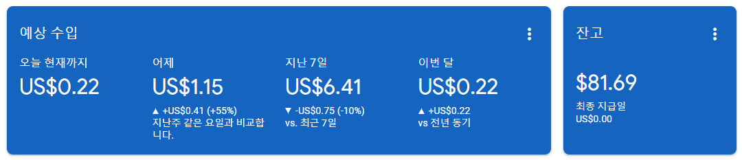 응?? 그런데 잔고가 아직 81.69달러입니다. 뭐지? 아~ 아직 미국은 오후 6시 19분이니까 집계가 안된건가? 했는데 미국시간으로 1일 땡하고 확인해 봐도 그건 아니더라구요 ㅎ 애드센스 도움말을 찾아보니 이전달까지 실적이 집계 되는데 시간이 좀 소요되기 때문에 다음달 1일에 바로 되는게 아니라 영업일 기준으로 2~3일정도 시간이 소요될 수 있다고 하네요.