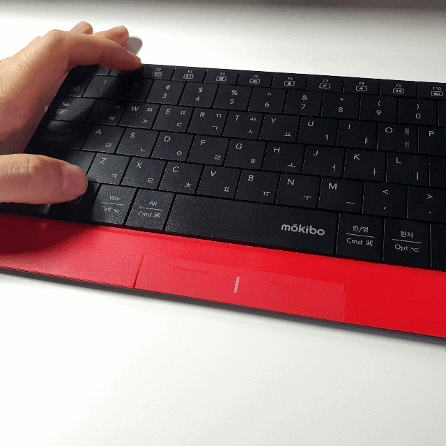 모키보의 가장 큰 특징은 터치패드인데요. 터치패드의 터치감은 보통의 노트북에 있는 터치패드와 비교한다면 약간 떨어지는 수준이라고 봐야 할 것 같습니다. 마우스를 움직이는 일반적인 동작에서는 큰 문제나 불편함을 찾기 어렵지만 화면 상하 스크롤이나 핀치줌 멀치터치 등 확대 기능을 사용할 때는 아쉽게도 아직은 최적화된 움직임이라고 하기는 어려운 것이 사실입니다. 가끔씩 마우스가 떨리는 듯한 현상이 있기도 하는데 아무래도 작은 키캡 각각이 터치패드의 역할을 하기 때문에 구조적인 한계가 있을 것이고 키캡들이 모여서 하나의 큰 터치영역을 이루기 때문에 키캡 사이사이 빈 공간을 넘어가는 동작을 인식하는 데에도 어려움이 있어서 그런 것이 아닐까 예상해봅니다.