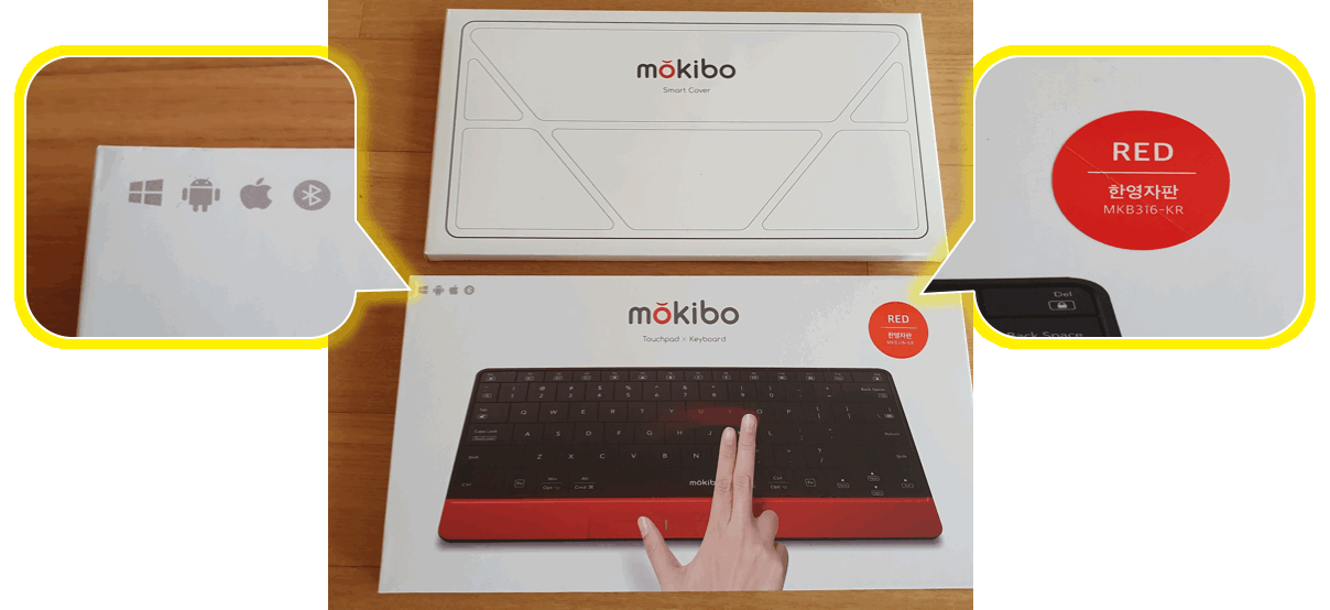 모키보는 휴대용 키보드를 지향하고 있습니다. 그래서 이동환경에서 키보드를 보호할 수 있는 액세서리로 키보드 커버가 준비되어 있습니다. 물론 별도 구매품이긴 한데 일반적인 파우치와 모바일 기기를 거치할 수 있는 스마트 커버로 2가지 종류가 있는데 저는 스마트커버로 주문을 했습니다.
