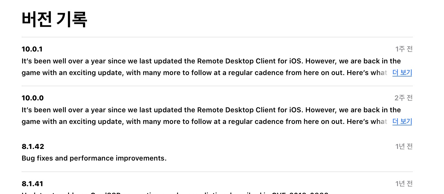 iOS용 Microsoft Remote Desktop(RDP)이 오랜만에 업데이트 되었습니다.