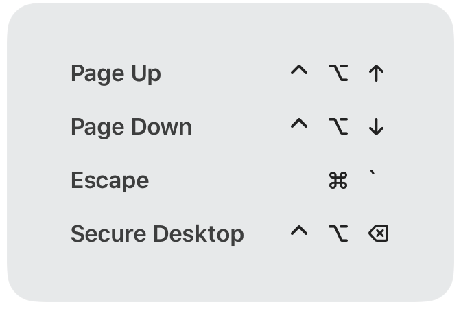 그리고 command 키의 조합으로 다음의 4가지 단축기능을 추가로 사용할 수도 있습니다. 게인적으로 ESC키 조합이 " ' " 가 아니라 " ₩ " 면 위치상 좀더 직관적일것 같은데 아쉽네요.