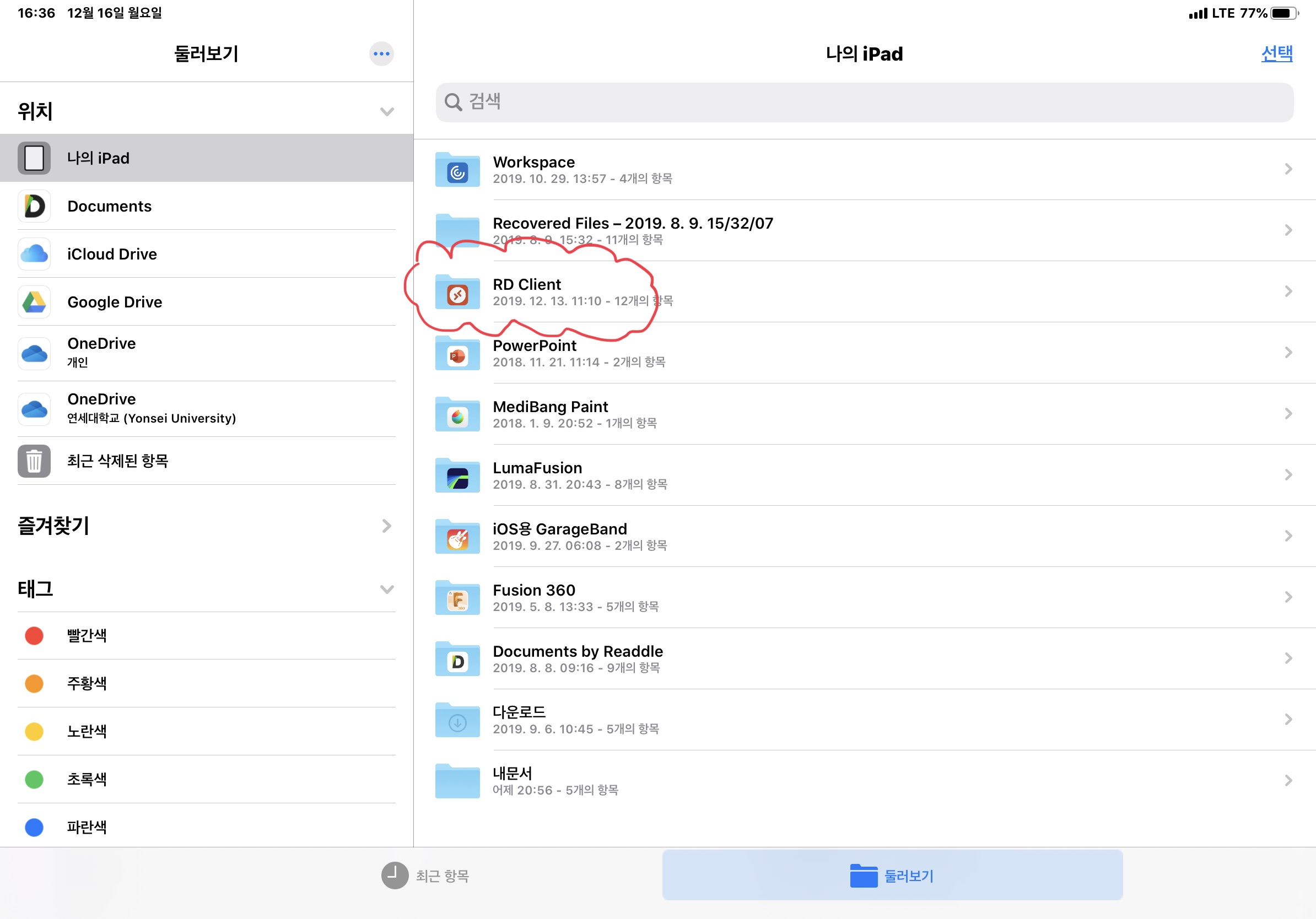 아이패드 저장공간중 "RD Client"라는 폴더 전체가 리디렉션되는 형태로 동작하는데 이동해야 하는 파일을 이 폴더를 경유해서 사용하면 됩니다.