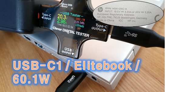 충전 대상 노트북은 HP의 엘리트북이고 최대 충전 속도는 65W입니다. 노트북 베터리가 20% 이하로 충분히 떨어져 있는 상태에서 노트북을 끄고 최대 속도로 충전이 가능하도록 상황을 만들어서 충전하였습니다. 충전기를 연결하면 처음에는 약 40W대에서 충전이 시작되었다가 시간이 지나면서 점점 속도가 올라가서 최대로 60W 초반대의 속도를 보여주었습니다. 65W에는 못미치지만 그래도 60W까지는 안정적으로 뽑아주는걸 확인했습니다.