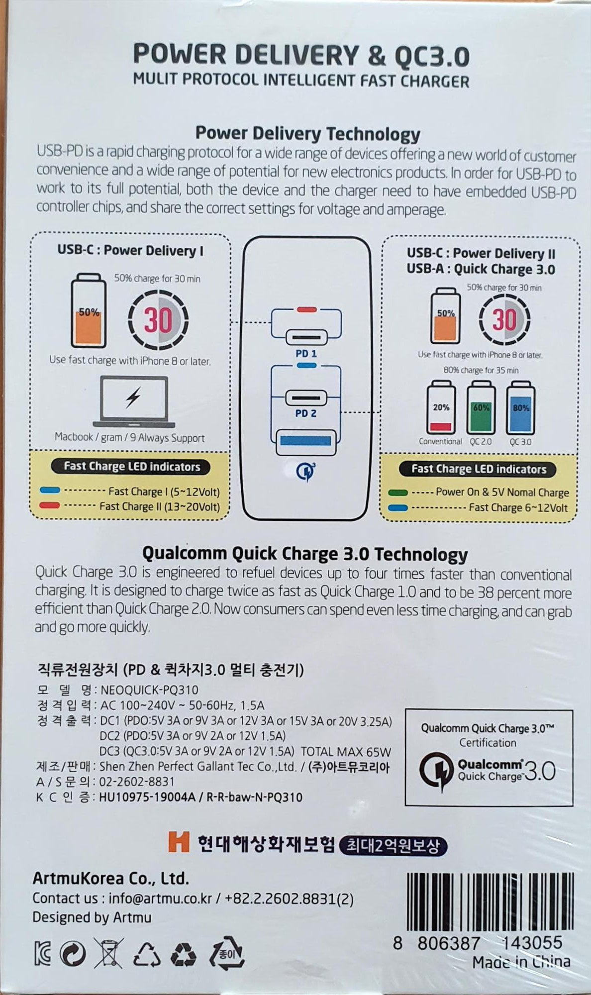 PD를 지원하는 아트뮤의 고속 멀티 충전기 네오퀵을 소개합니다. 모델명은 PQ310 입니다. 오랜만에 추천할 만한 아이템 발견했어요.
