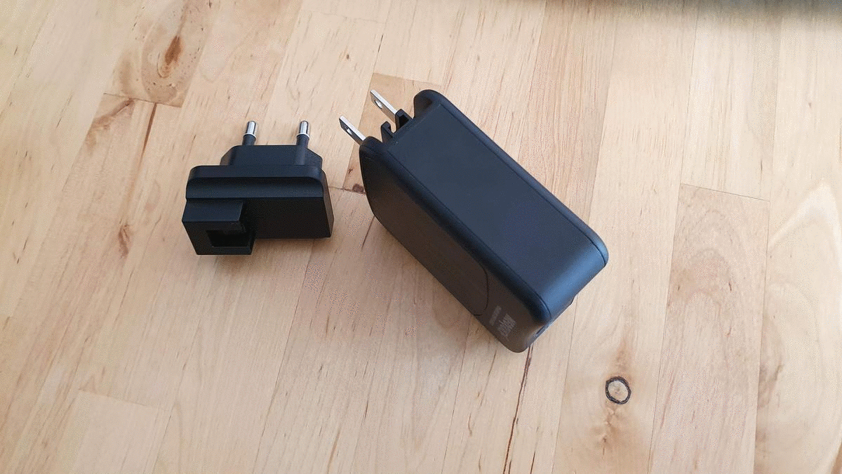 본체를 구입하면 기본적으로 220V용 아답터가 같이 들어있는데요 이 아답타는 분리가 가능하고, 분리를 하면 미국식 110V 단자가 나옵니다.