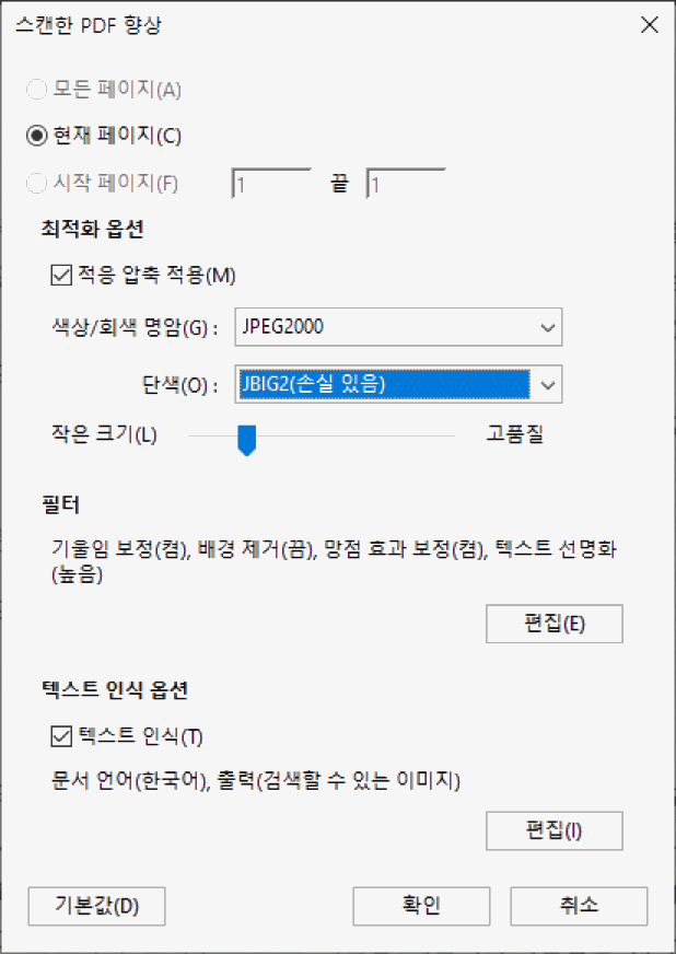 제가 사용한 후처리 과정은 아크로벳의 "스캔 및 OCR"입니다.