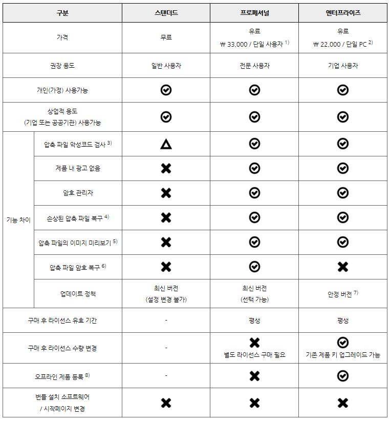지금까지는 전면 무료 프로그램으로 배포되어 회사에서도 집에서도 잘 쓰고 있었는데 이번에 버전 7로 업그레이드를 하면서 라이센스가 스탠다드, 프로페셔널, 엔터프라이즈 3가지로 새분화를 시켰습니다. 무료인 스탠다드 판은 기존처럼 용도에 상관없이 무료로 사용을 할 수 있지만 광고가 포함되어 있습니다.