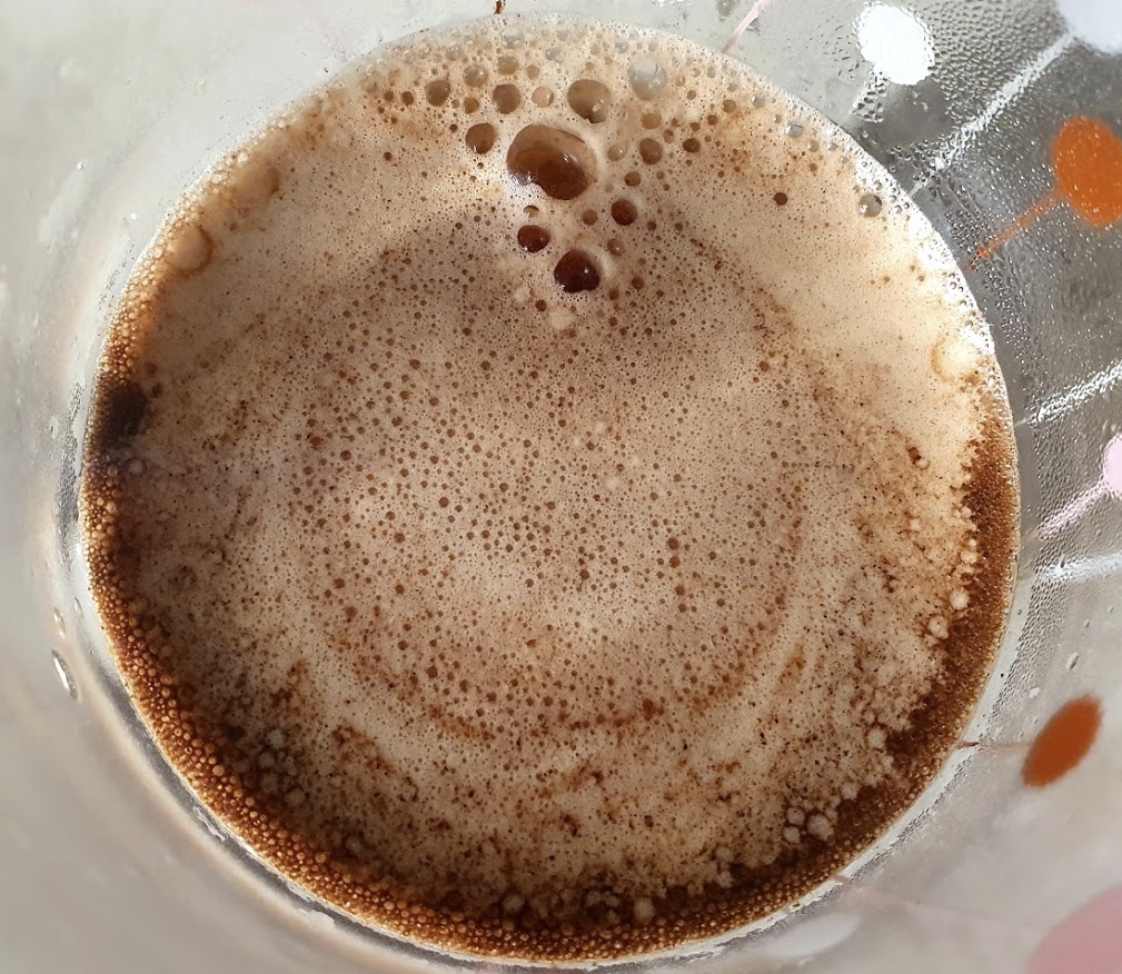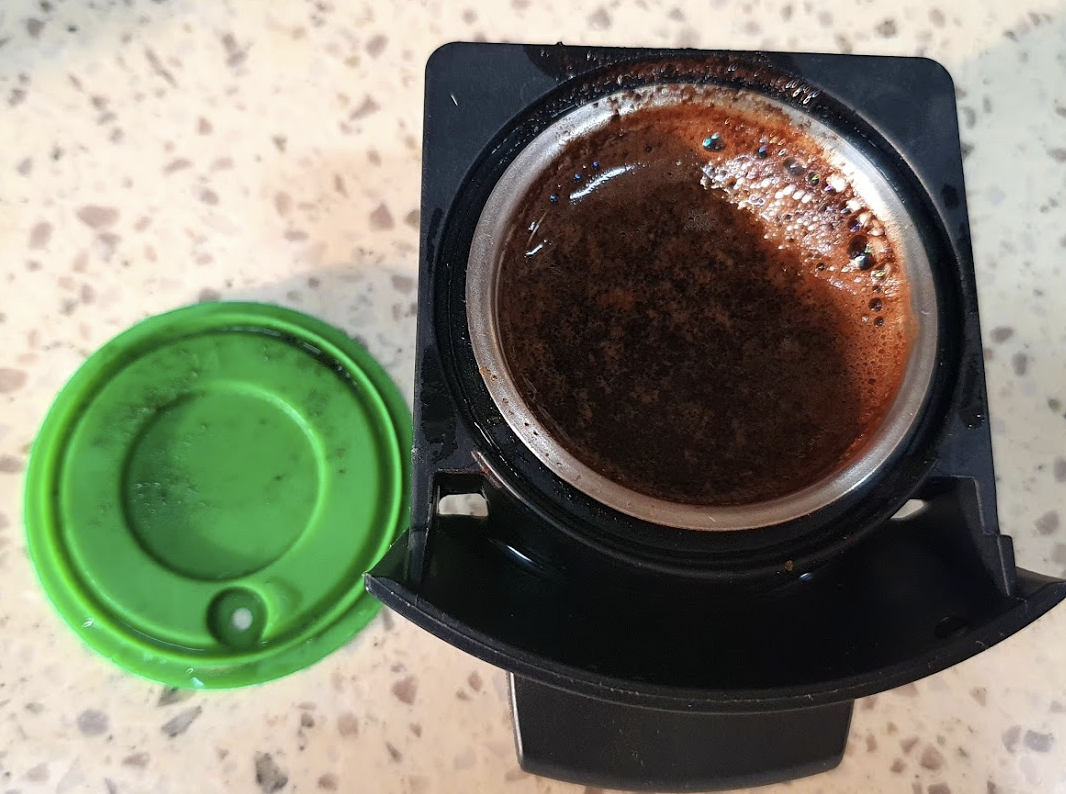 커피가 다 내려왔습니다. 커피 거품도 보이고 제법 그럴듯해 보이는데요. 하지만 커피가 충분히 우러나오지는 못한 느낌입니다. 저는 캡슐 모양이라서 나름 에스프레소 머신과 같은 그런 느낌을 기대했는데 말도 안 되는 기대였습니다. 기본적으로 돌체구스토 머신의 추출압이 그렇게 높지 않습니다. 그래서 커피가루를 넣을 때 양 조절이 중요하고 오히려 스탬퍼로 눌러주는 건 역효과였던 것 같아요. 커피를 넣고 누르지 않고 자연스럽게 둔 상태에서 커피를 내리면 훨씬 부드럽게 나옵니다. 혹시 구매를 고려하시는 분이 계시다면 스탬퍼는 비추라고 말씀드리겠습니다.