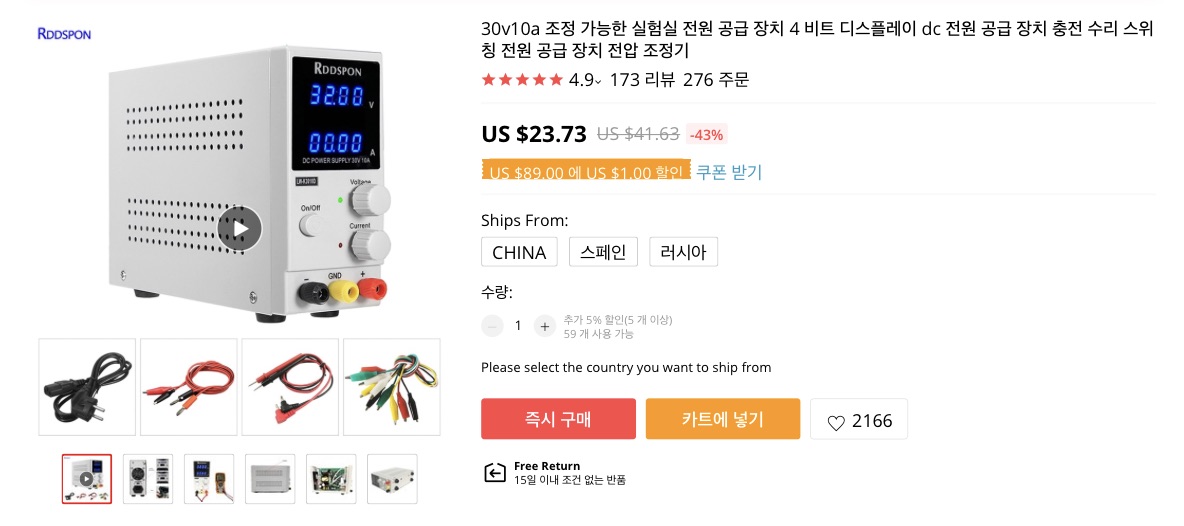 그래서 또하나 질러버린 전원공급장치입니다. 아두이노 공부하고 전자제품 분해도 하면서 전원공급장치가 가~끔 있었으면 좋겠다 생각을 했었는데 알리를 보다가 이런 말도 안되는 가격을 찾았습니다.