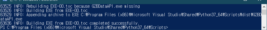 변환이 완료되면 "Budilding EXE from EXE-00.toc completed successfully."라는 메시지를 확인하실 수 있습니다.