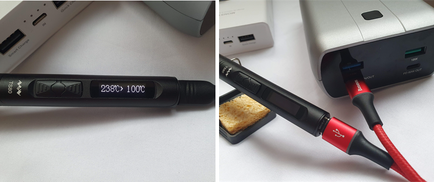 TS80을 간략히 설명하면, 휴대용 스마트 인두기라고 할 수 있을 것 같은데요. 작아서 휴대하기도 좋은데 USB 전원으로도 작동하기 때문에 외장 배터리를 사용할 수 있어서 휴대성이 극대화된 그런 인두기라 할 수 있습니다.