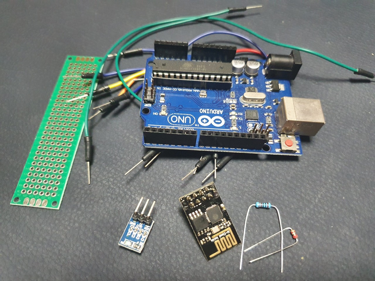 먼저 필요한 준비물입니다. 당연히 가장 중요한 ESP01 모듈(1M 메모리짜리) 필요하고 그리고 ESP모듈에 펌웨어를 올릴 때 브릿지로 사용할 아두이노 우노 보드, 저항, 점프 케이블 그리고 나중에 최종적으로 프린터기에 설치할 최종 보드를 만들 만능 기판과 프린터의 5V 전원을 3.3V로 변환시켜줄 AMS1117 전원 모듈 등을 준비합니다.