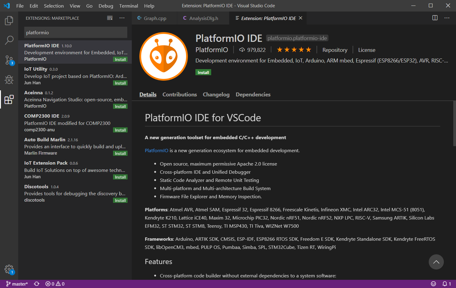 VS Code는 오픈소스의 텍스트 에디터라고 할 수 있는데요. 오픈소스답게 방대하고 막강한 확장 프로그램이 특징입니다. 그래서 다양한 플랫폼에서 사용 가능하고 다양한 코드 개발을 지원하기 때문에 단기간에 점유율이 급상승한 인기 프로그램입니다. 다양한 익스텐션을 활용하면 Visual Studio 못지않은 개발환경을 만들 수 있는데요. 그중에서 PIO는 VS Code를 아두이노뿐만 아니라 다양한 컨트롤러(MCU)를 사용할 수 있도록 해주기 때문에 확장 프로그램이지만 배보다 큰 배꼽 같은 느낌입니다.