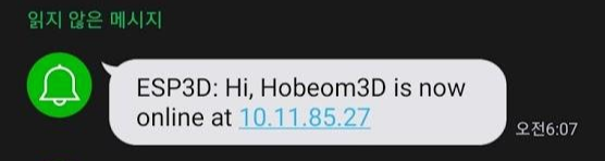 ESP3D를 통해서 프린터기가 무선으로 연결이 되면 좋은 점이 프린터기 컨트롤을 위해서 꼭 PC를 사용하지 않아도 된다는 점 이겠죠. 프린터가 네트워크에 들어가 있으니 필요할 때마다 핸드폰으로 상태를 확인해 볼 수 있는데요. ESP3D에는 그 이상의 기능이 포함되어 있습니다. 바로 프린터기에서 푸시 메시지를 보내는 기능입니다.