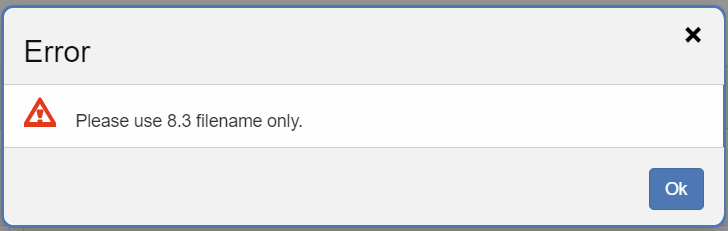 하지만 파일이름에 제약사항이 있습니다. 파일 이름이 좀 길거나 하면 업로드 시에 다음과 같은 오류가 발생합니다.