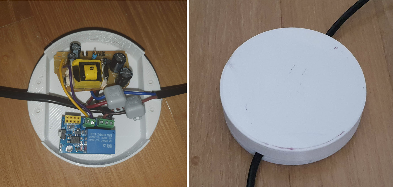 조립된 릴레이와 아답타 등은 손으로 만지면 위험하니까 패키징을 할 수 있도록 요런 모양으로 케이스를 제작했습니다. 나름 들어가고 나가는 전선을 꽉 고정할 수 있도록 디자인을 신경 썼다는 건 티 나지 않는 포인트 되겠습니다. ㅎ