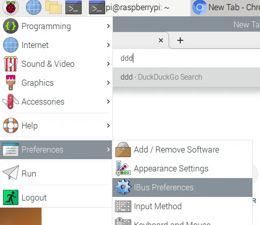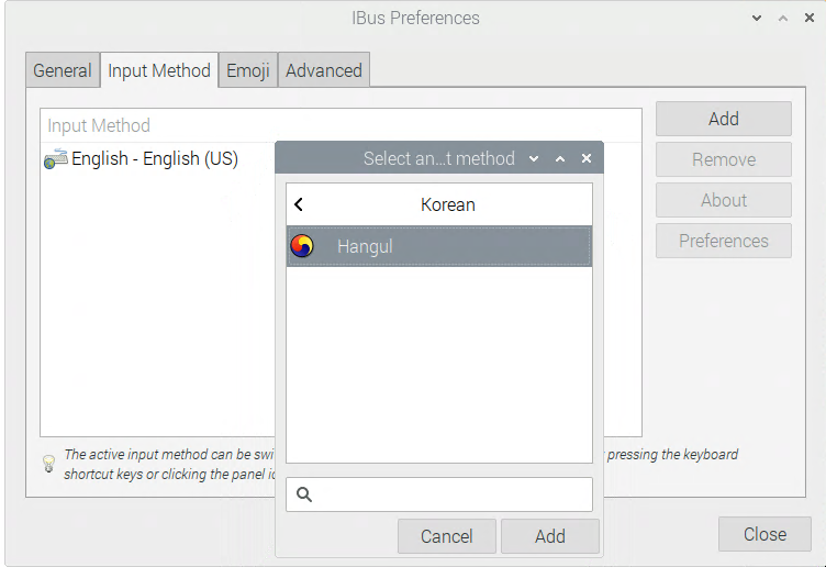 설치가 완료되면 "시작 > Preferences > IBus Prefrences" 메뉴를 통해 IBus설정창을 열어줍니다.