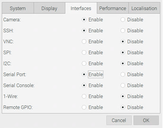 "Interfaces"탭에서 :SSH"옵션을 'Enable'로 돌려줍니다.