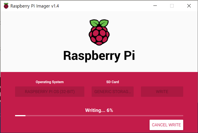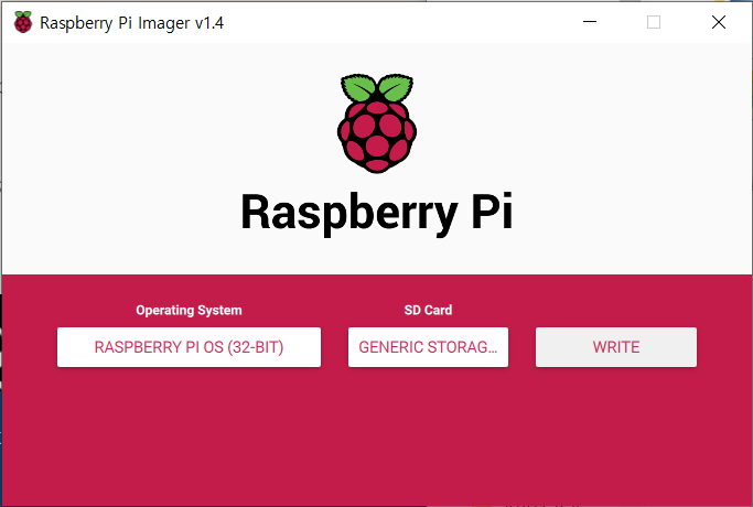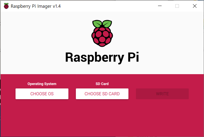 앞에서 설치한 imager를 실행해서 OS와 설치할 드라이브를 선택하고 WRITE버튼을 눌러줍니다. OS는 라즈베리파이 OS 외에도 다양한 옵션이 있으며 별도로 가지고 계신 이미지 파일이 있으면 그것도 사용할 수 있도록 부팅 디스크 제작용 툴로 사용할 수 있게 만들어져 있네요.
