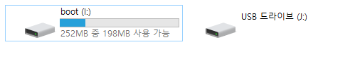라즈베리파이OS설치가 완료된 SD카드를 라즈베리파이에 삽입해서 부팅하기전 컴퓨터에서 다음 작업을 추가로 더 해줍니다. 라즈베리파이OS가 설치된 SD카드를 컴퓨터에 다시 삽입하면 다음과 같이 2개의 드라이브로 인식되는것을 볼 수 있는데요. 여기서 boot라는 라벨이 붙은 디스크에서 작업을 해 줍니다.