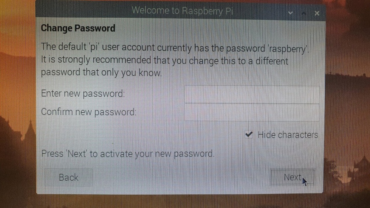 사용자의 비밀번호를 변경합니다. 라즈베리파이OS의 기본 사용자는 "pi"라는 계정인데요 비밀번호가 'raspberry'로 초기화되어있습니다. 후에 보안상 위험이 있으니 비밀번호를 변경해줍니다.