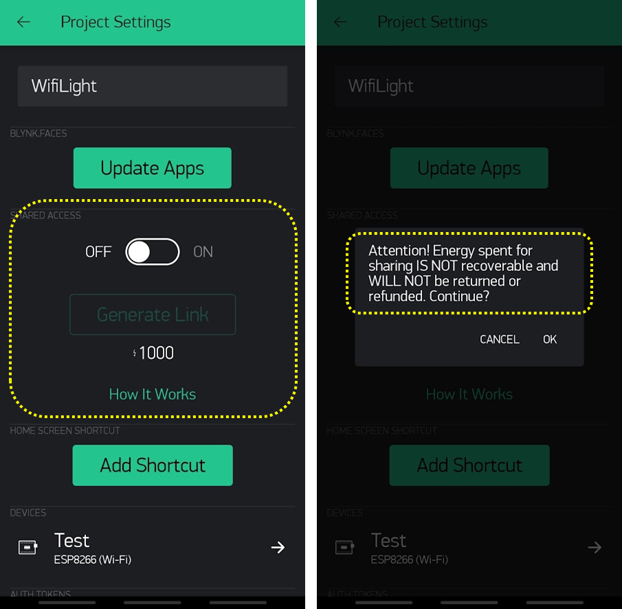IoT 전등을 만들었으면 온가족이 편리하게 사용할 수 있도록 해야 할 텐데 Blynk를 이용하게 되면 핸드폰에서도 Blynk 클라이언트를 사용해야 합니다. 물론 Blynk니까 클라이언트 쉐어링 역시 매우 편리하게 할 수 있도록 엄청 쉬운 인터페이스를 제공하고 있습니다. 그런데 클라이언트 프로그램을 다른 사람에게 배포를 하기 위해서는 결재가 필요했습니다.