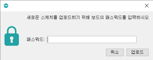 저는 위 코드에서 32행의 비밀번호 인증부분을 활성화했기 때문에 OTA 업로드 때마다 비밀번호를 확인하게 됩니다. 그래서 아래와 같은 창이 뜨는데요. 스케치에서 설정한 비밀번호 "admin"을 입력해주면 되겠습니다.
