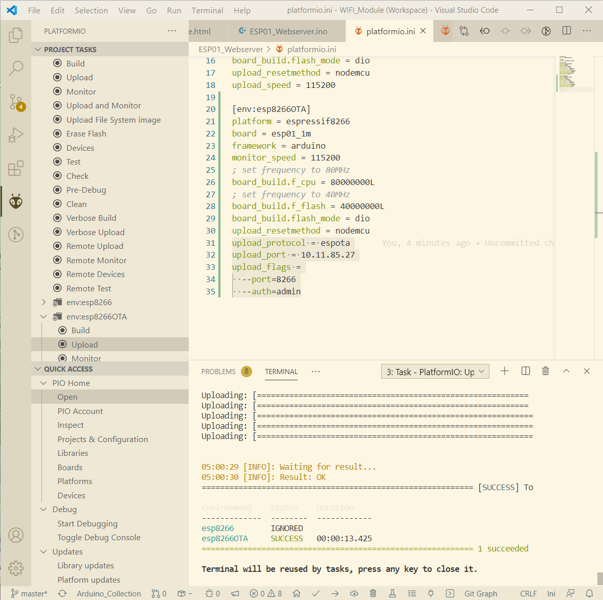 Arduino IDE에서 간단하게 OTA 업로드가 가능했었는데요. 주로 코드 작성을 하는 환경은 VS Code이기 때문에 PlatformIO에서도 OTA 업로드 설정을 해 두겠습니다.