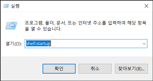 실행 창에서 "shell:startup"이라고 입력하면 바로 시작프로그램 폴더로 이동할 수도 있습니다.