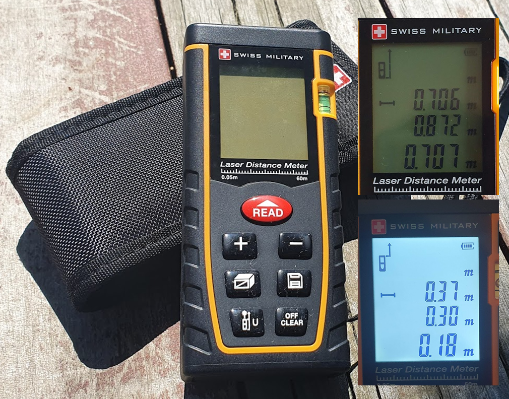 아래 사진의 제품은 제가 처음으로 구매해서 상당기간 잘 사용했던 제품입니다. 저는 레이저 측정기를 전문적으로 사용해야 하는 사람은 아니라서 처음엔 가격이 저렴해서 이 제품을 구매했었습니다. 측정값을 더하고 빼는 계산도 편리하게 할 수 삼각 측정이나 부피, 넓이 측정 등 기능이 기본으로 있어서 일상용으로 사용하기에 불편함이 없었습니다. 그리고 나중에 알게 된 사실이지만 이 제품도 정확도가 ±3mm로 중간은 되는 제품이었습니다.