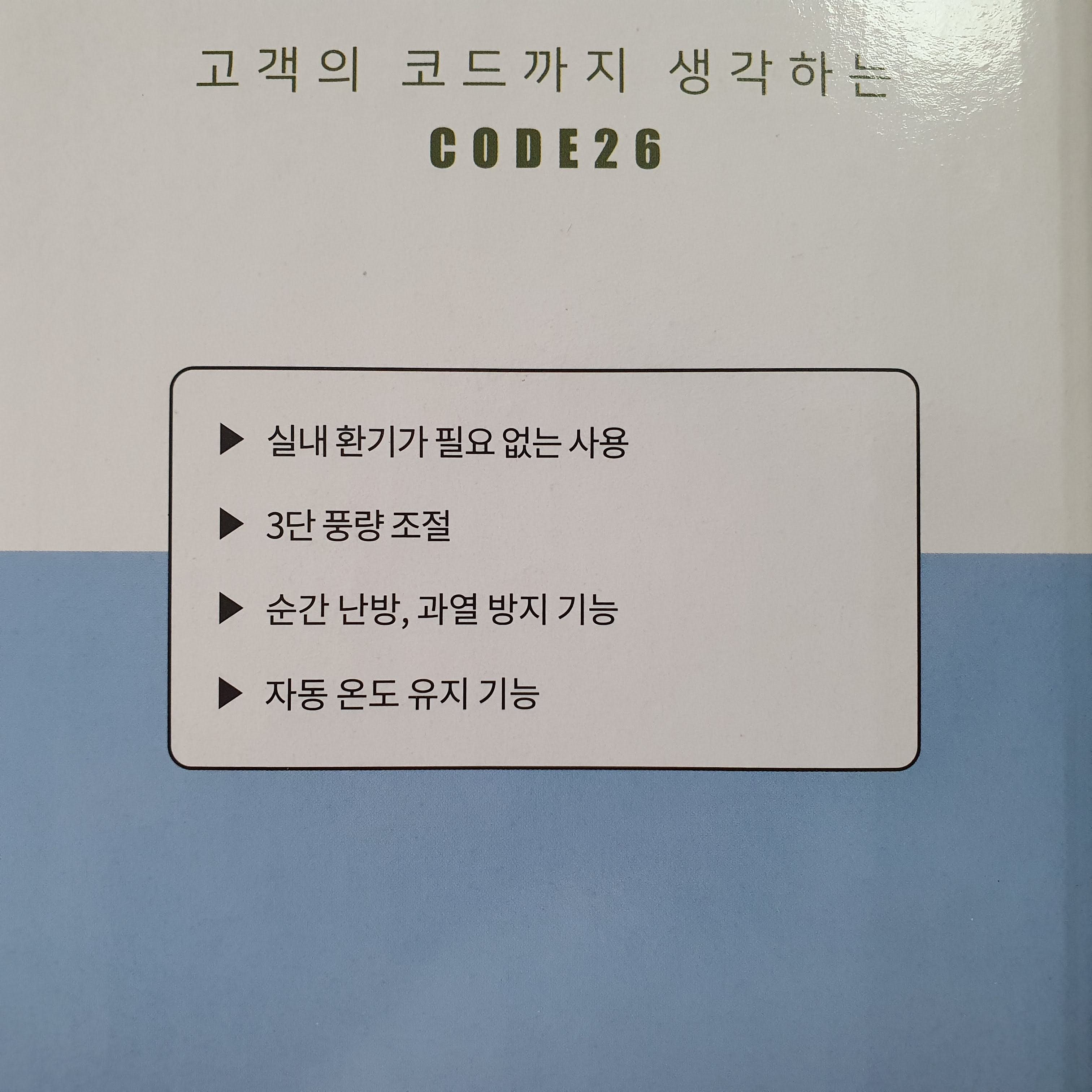 처음에 제품을 받고 의아했던 부분이 하나 있는데 포장지 겉면에 쓰여있는 특장점 4가지 포인트 중 2번과 3번이었습니다. 쇼핑몰 제품 설명에서는 없는 3단 풍량 조절 기능과 자동 온도 유지 기능이 있다고 쓰여있는데요. 이런 고급 기능에 이 정도 가격이면 완전 혜자다 싶었는데 역시나 문구가 잘못된 것 같아요. 뒤에서 자세히 말씀드리겠습니다.