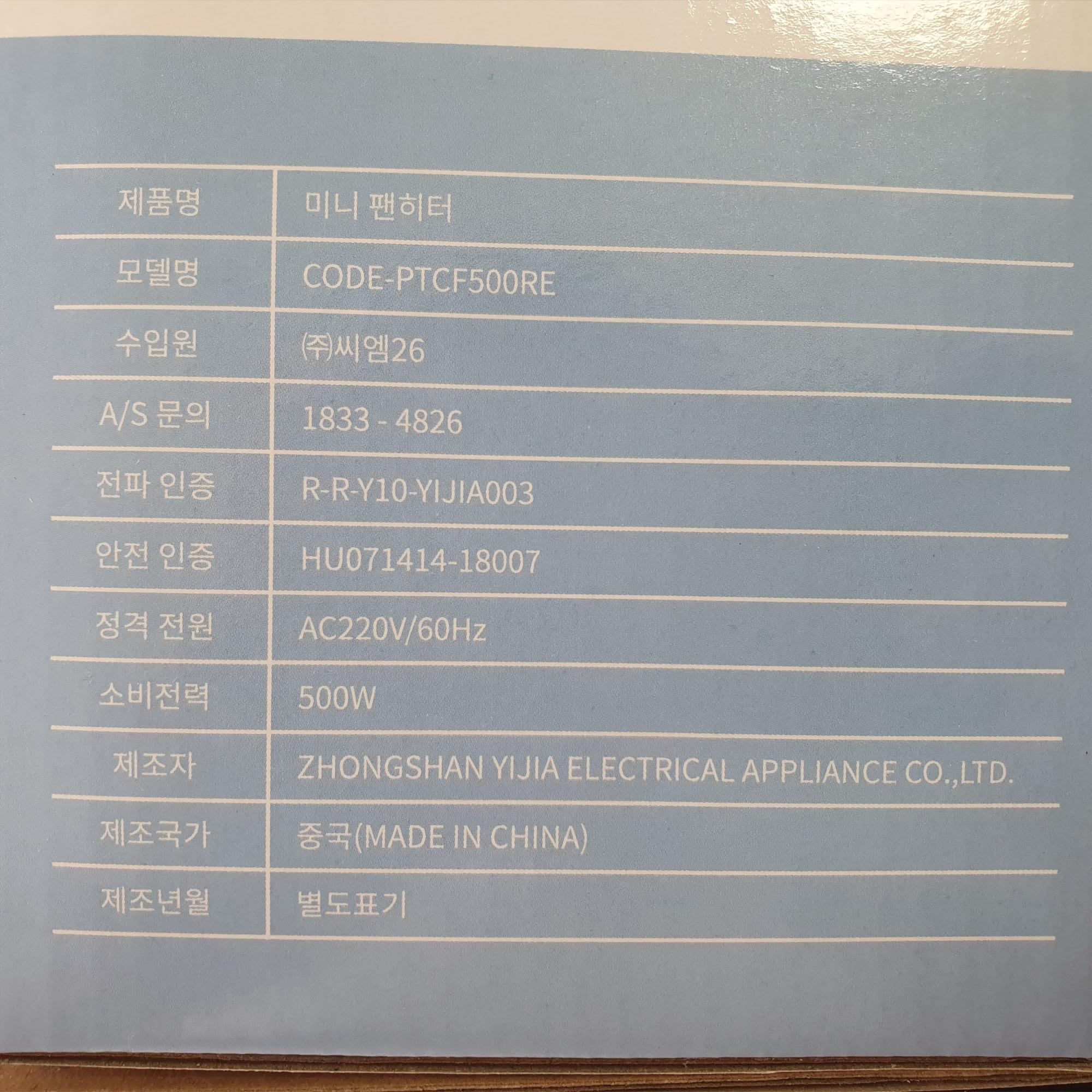 선택한 모델은 국민 온풍기급의 툴콘 코드26이라는 모델입니다. 2만 원 초반대로 구매를 하였습니다. 이 제품을 선택하게 된 이유는 단순합니다. 일단 가장 많이 팔리는 제품이었고 두 번째로 캠핑장에서 사용할 수 있는 소비전력 500~600W 이하였기 때문입니다.