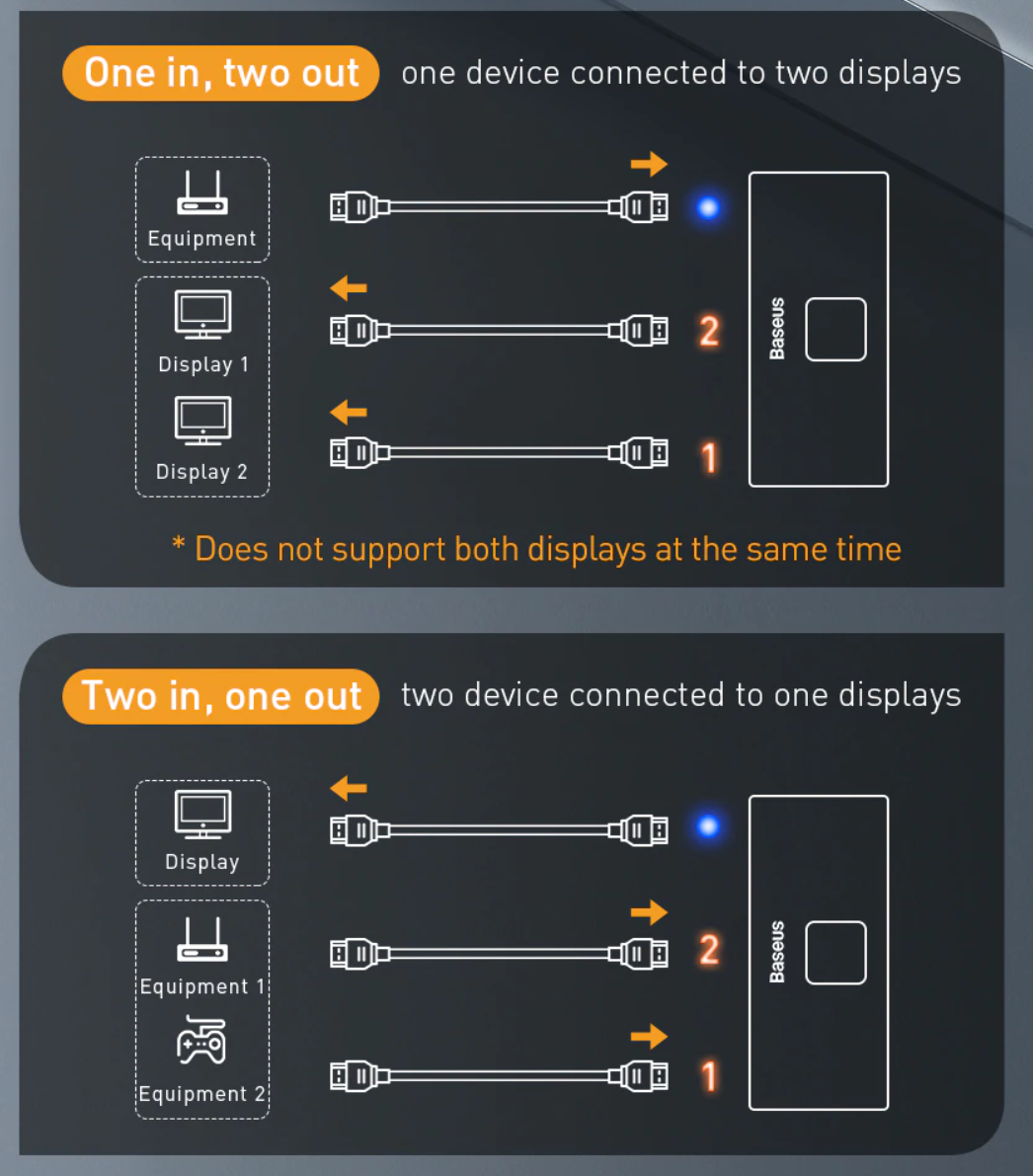가성비 + 디자인 이라는 측면에서 Baseus는 둘째가라면 서러운 브랜드라고 할 수 있는데 HDMI 분배기 역시 이 제품이 눈에 들어왔습니다. 알리에서 8.69$에 역시나 그렇듯 무료배송으로 구매할 수 있었습니다.