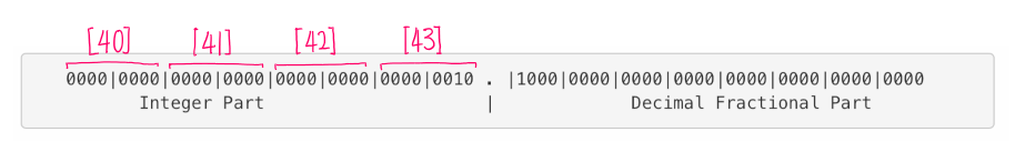 NTPBuffer변수는 위 그림과 같이 NTP 메시지 48바이트가 담겨있습니다. 이 중에서 우리가 관심 있는 Trasmit Timestamp를 읽어오면 되는데 40~47번째 바이트인 8바이트 구간입니다. 그리고 각 Timestamp는 정수 4바이트와 소수점 4바이트로 이루어져 있어서 실제로 우리가 필요한 부분은 40~43번째 바이트 구간이란 것을 알 수 있습니다.