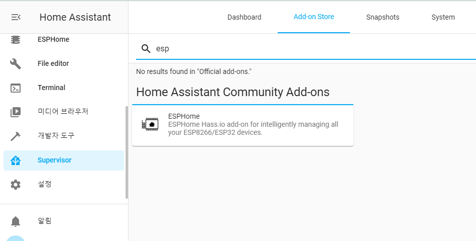 ESPHome Add-on 설치